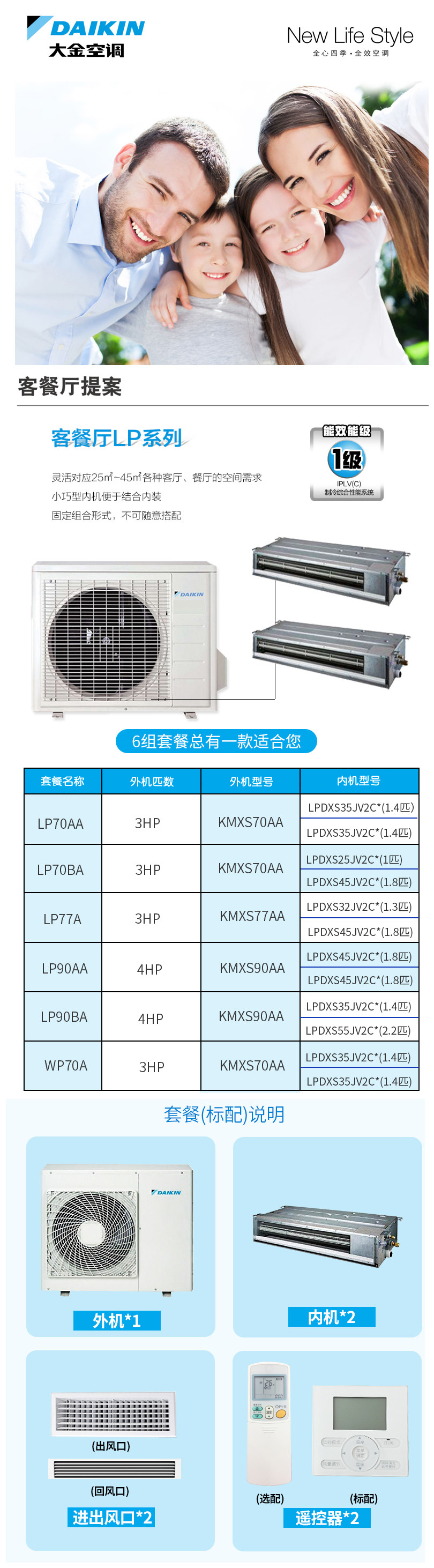 ● 室內機可選擇風管式室內機或掛壁式室內機 ● 靈活對應各種客廳、餐廳的空調需求 ">