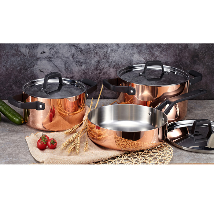 材 料 :三層銅,2.5mm鍋內部處理:精細砂光鍋外身處理:鏡面光底 部 :導磁底部把 手 :鑄鋼+槍黑色規 格: